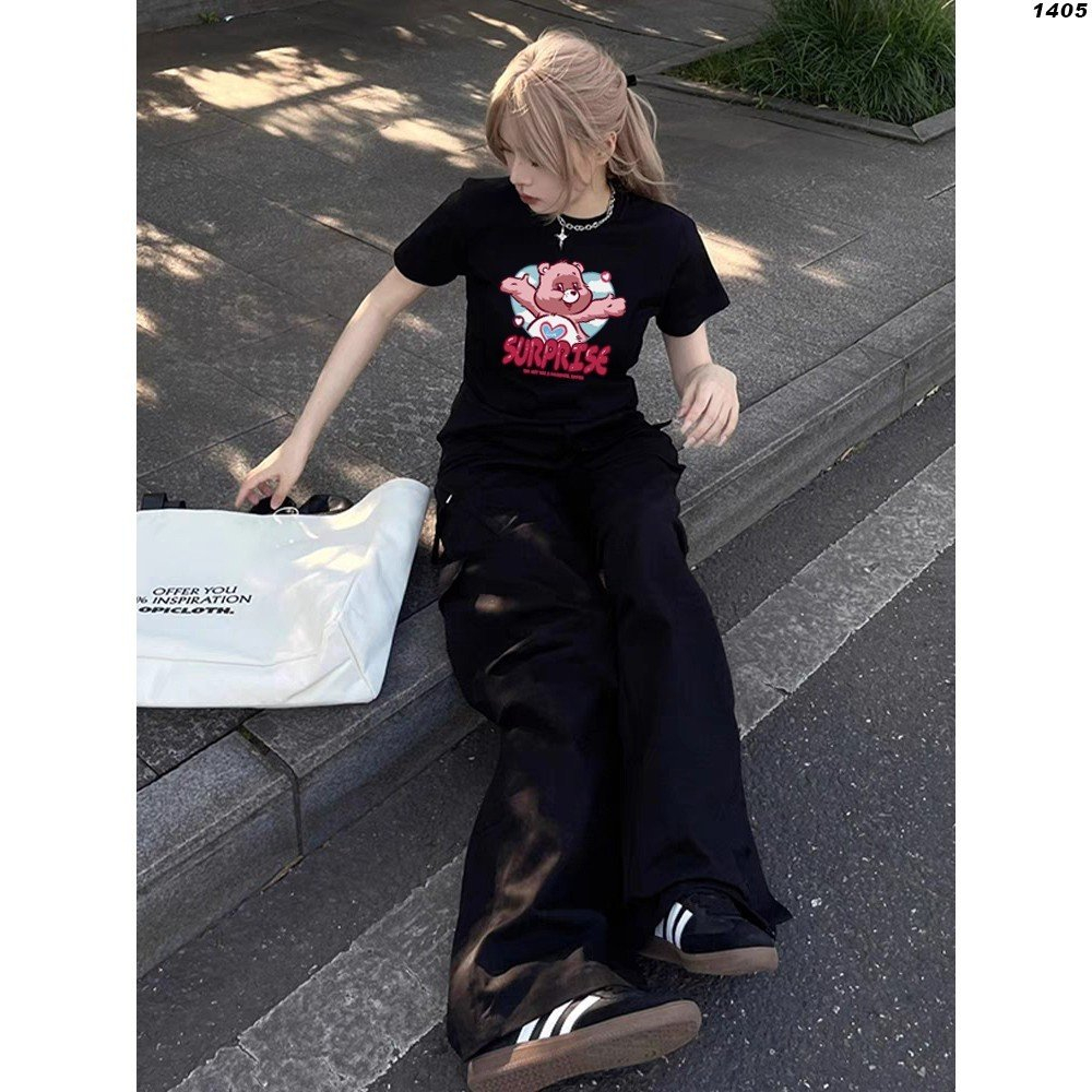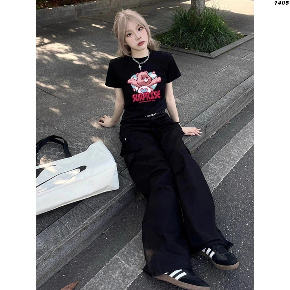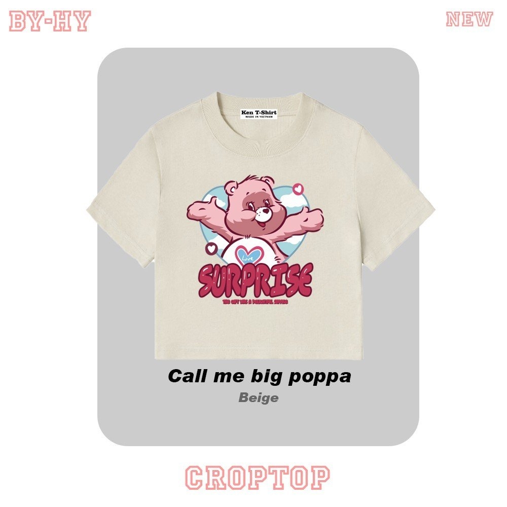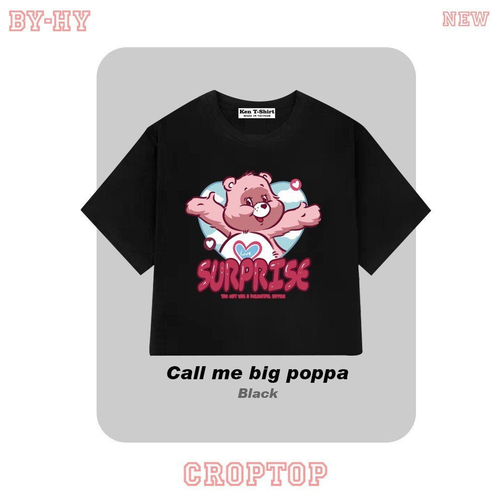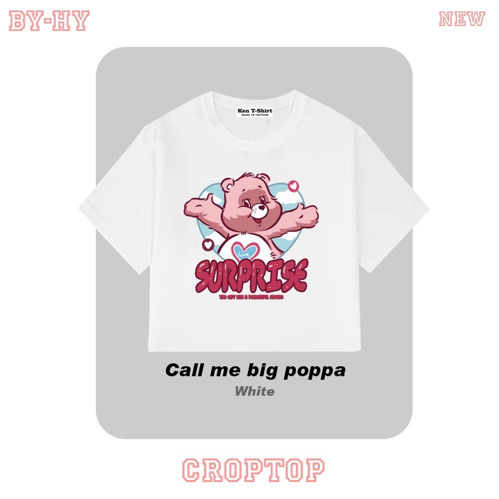 Áo croptop thun HY KOREA in Gấu Surprise 1405 tay ngắn freesize