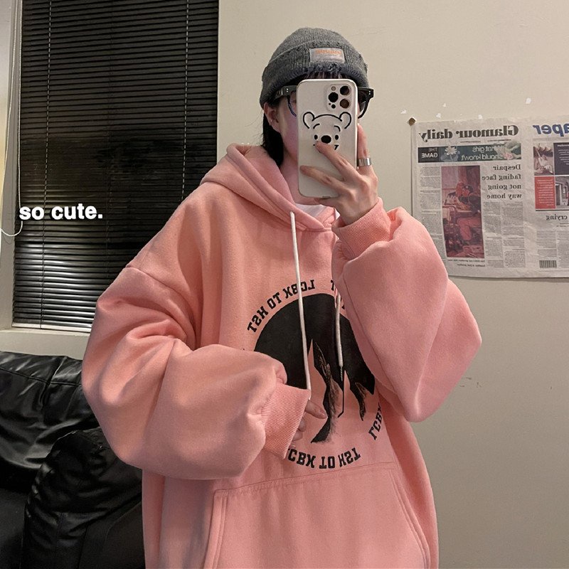🌸 Áo sweater hoodie nỉ bông kiểu dáng thể thao form rộng unisex trơn basic
