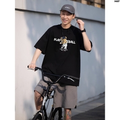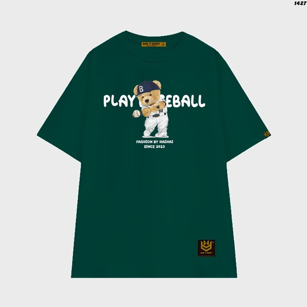 Áo phông cặp đôi HY KOREA Gấu bóng chày 1427 form rộng tay lỡ unisex