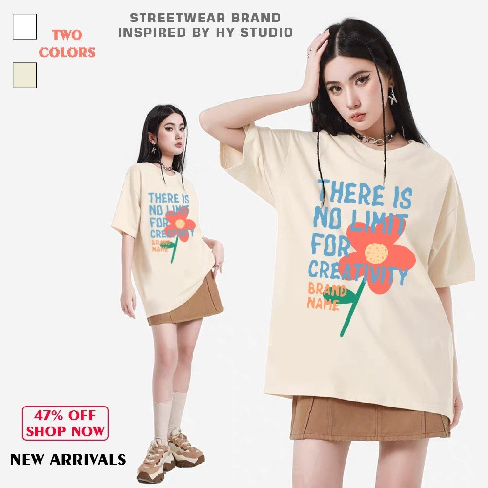 Áo Phông Tay Lỡ HY KOREA Cotton 100 Bông hoa NoLimit 1290 Form Rộng Unisex