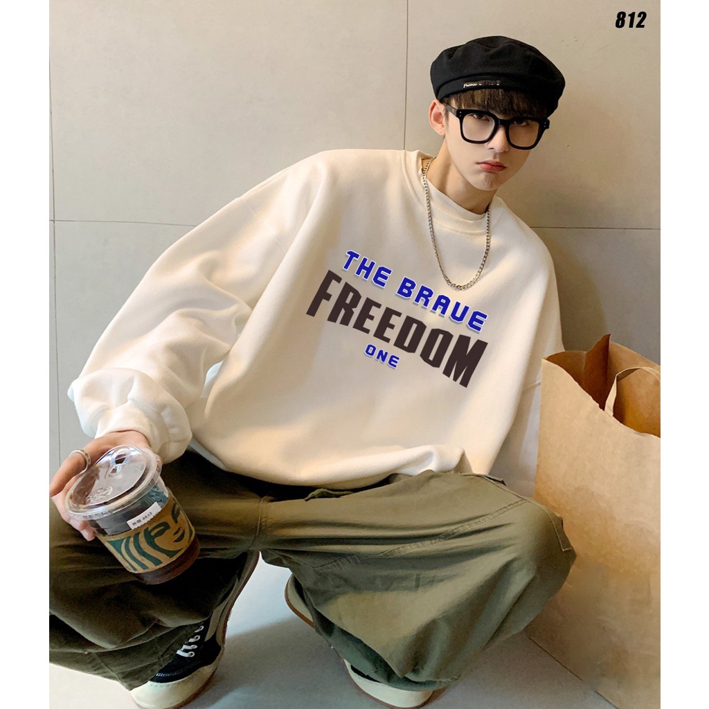 Áo Sweater nam nữ nỉ bông Freedom 812 Form Rộng HY KOREA