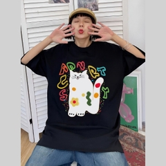 Áo thun form rộng HY KOREA Mèo ADVRT 1480 tay lỡ cho nam nữ