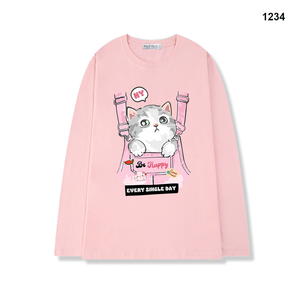 Áo Thun Tay Dài HY KOREA Yếm hồng mèo 1234 Form Rộng Unisex Freesize