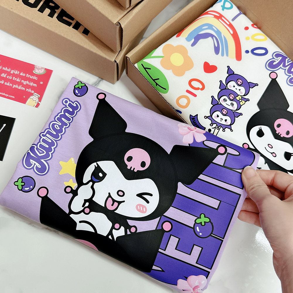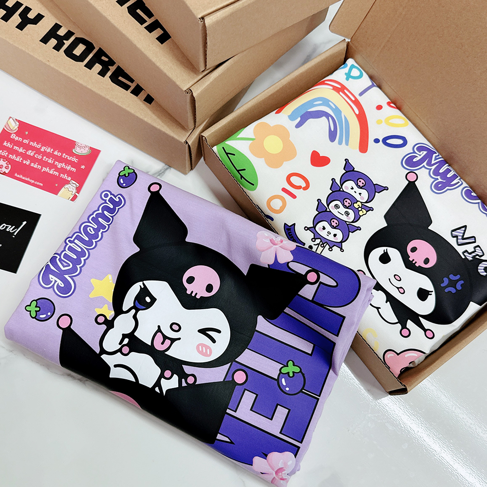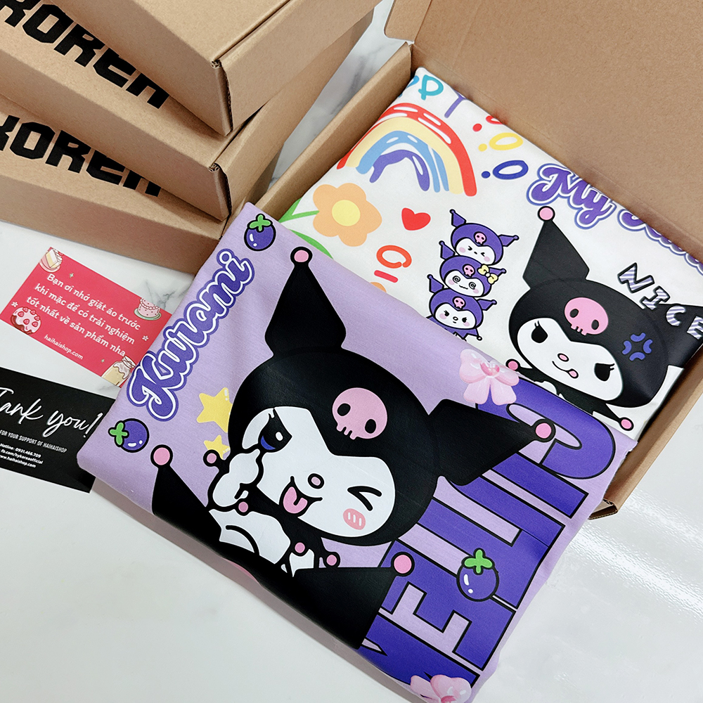 Áo thun tay lỡ HY KOREA Thỏ Kuromi dọc 1467 form rộng unisex