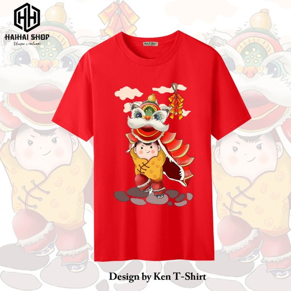 Áo Thun Tết Màu Đỏ In Hình Đầu Lân Chính Hãng Ken T-shirt