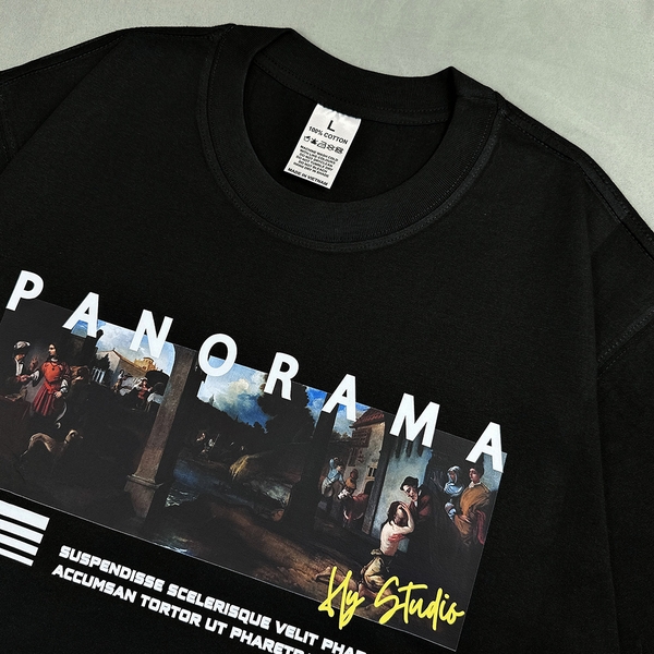 Áo Thun Unisex HY KOREA 100% Cotton thoáng mát Tranh Panorama 1400 Tay Lỡ