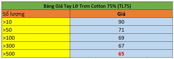 BẢNG GIÁ SỈ ÁO THUN TRƠN