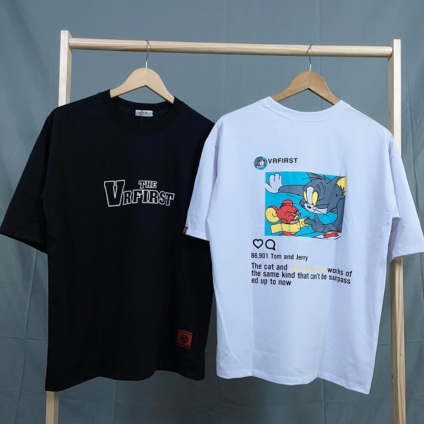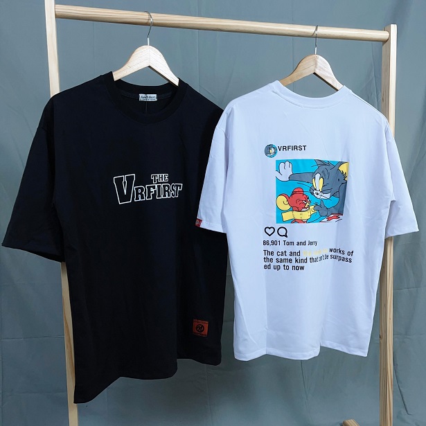 Áo Thun Tay Lỡ Unisex Phom Rộng Mèo Chuột VRFirst Cotton 75%, Dày Mịn Đẹp.